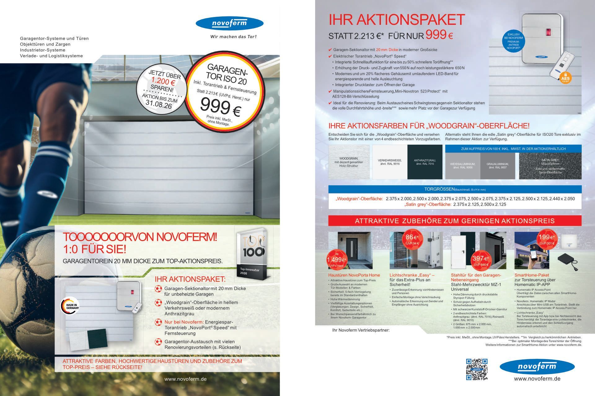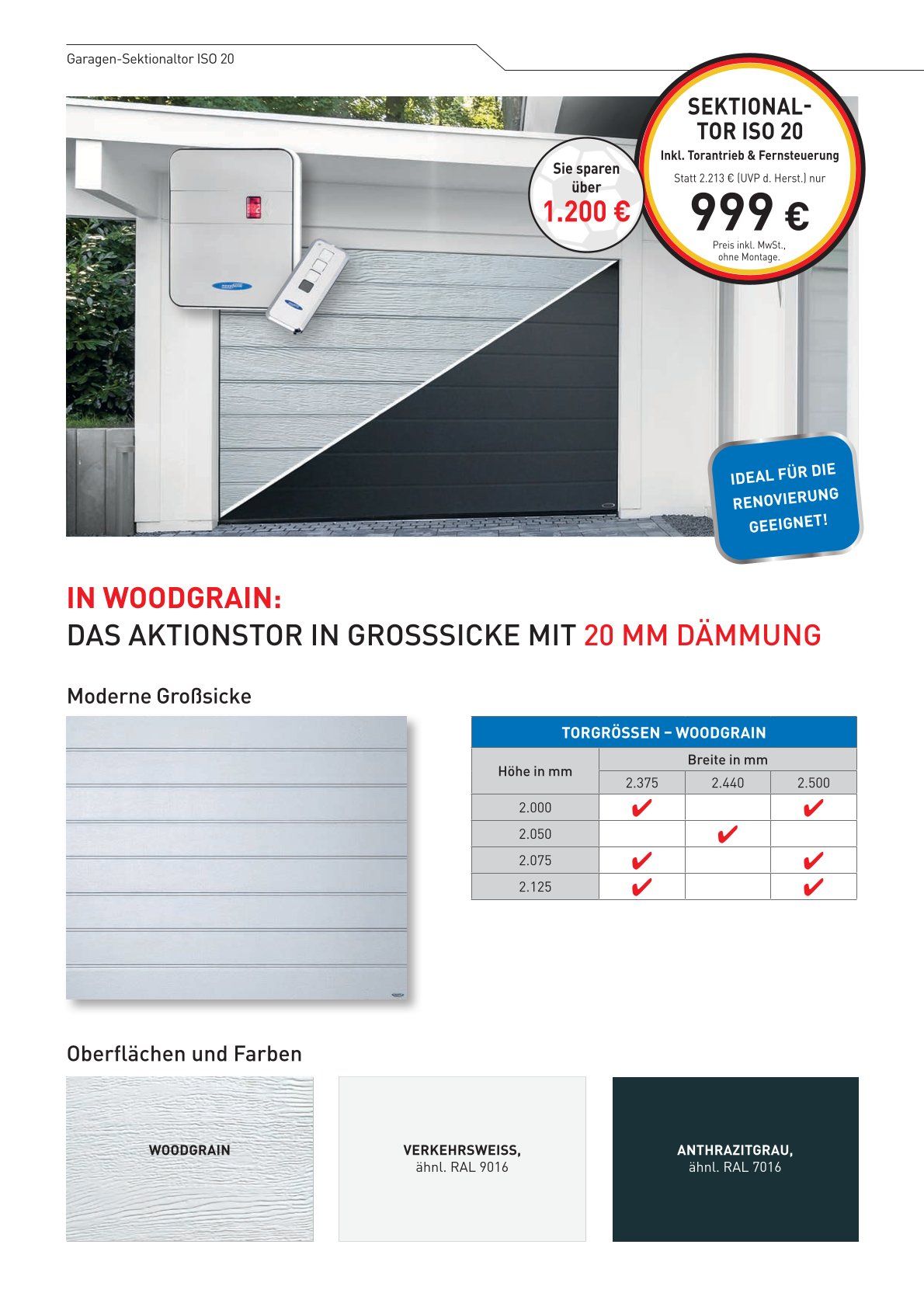 Zu den Aktionsprodukten gehören Garagen-Sektionaltore, Garagentorsysteme und Türen. Es handelt sich um sehr attraktive Angebote, die ein gutes Preis-Leistungs-Verhältnis bieten.